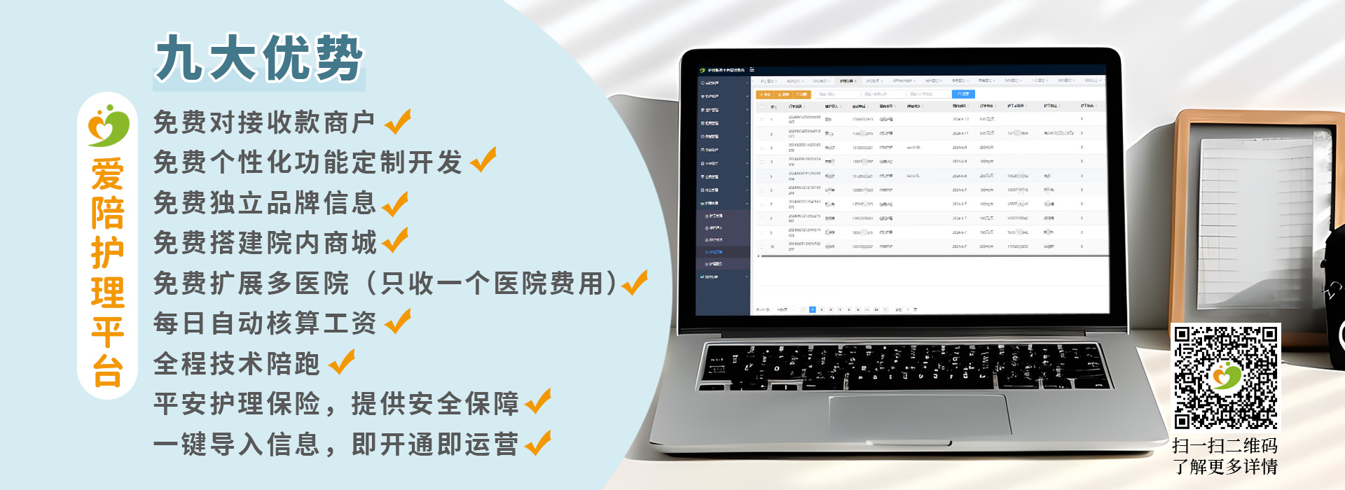 平臺賦能,無限可能 —— 多醫(yī)院免費入駐,拓寬服務邊界;智能工資核算,財務管理輕松無憂;全程技術護航,安全穩(wěn)定有保障;更有平安護理保險加持,每一份關懷都安心滿滿。